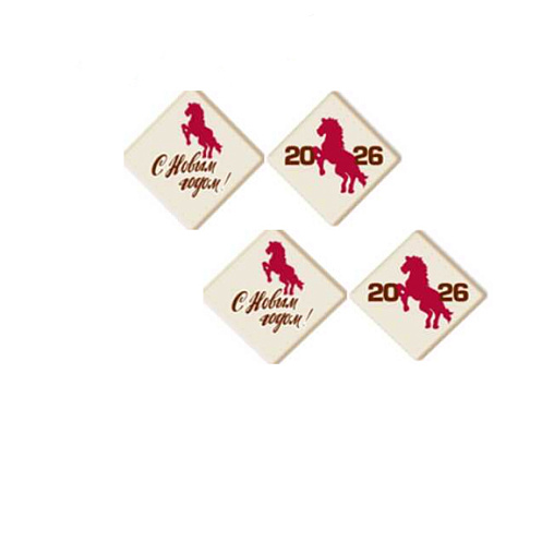 Символ 2026 года - Красная огненная лошадь - на квадратике из белой глазури обязательно станет праздничной изюминкой для новогодних десертов.