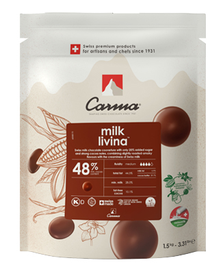 CARMA® Milk Livina 48% - новый уникальный молочный кувертюр с пониженным содержанием сахара.